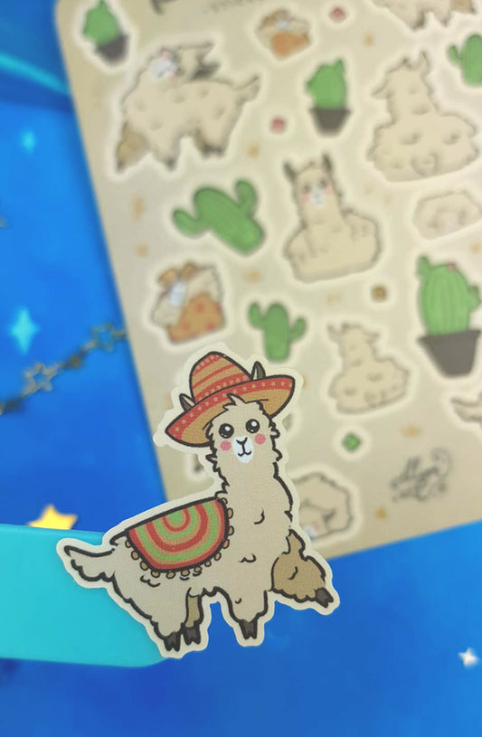 Tama the Llama | Cute | Stickers | Scrapbooking | Labels | Planning | Decorating | Cosy | Lama | Kawaii | Sticker Sheet | ellyonart