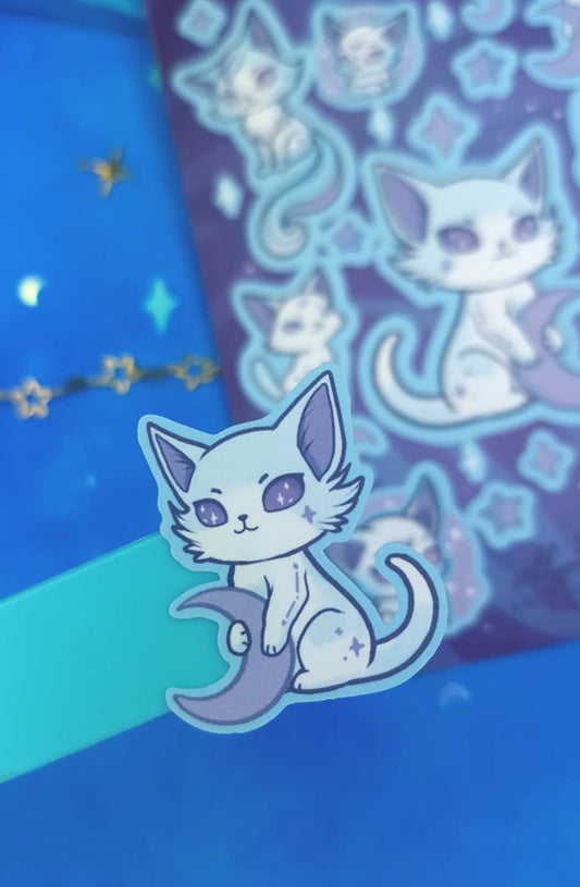 Twilight Cat Bookmark | Celestial Night Cat | Fantasy Gift | Glossy or Holographic | Game-Inspired Feline | Magical Bookish Gift for Readers
