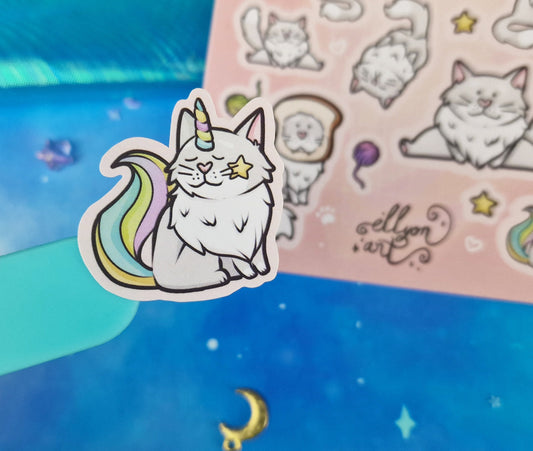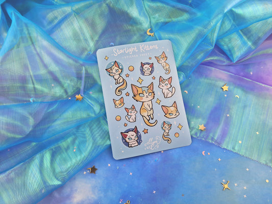 Starlight Kittens | Cute | Stickers | Scrapbooking | Washi Tape | Planning | Decorating | Cosy | Starry | Kawaii | Sticker Sheet | ellyonart