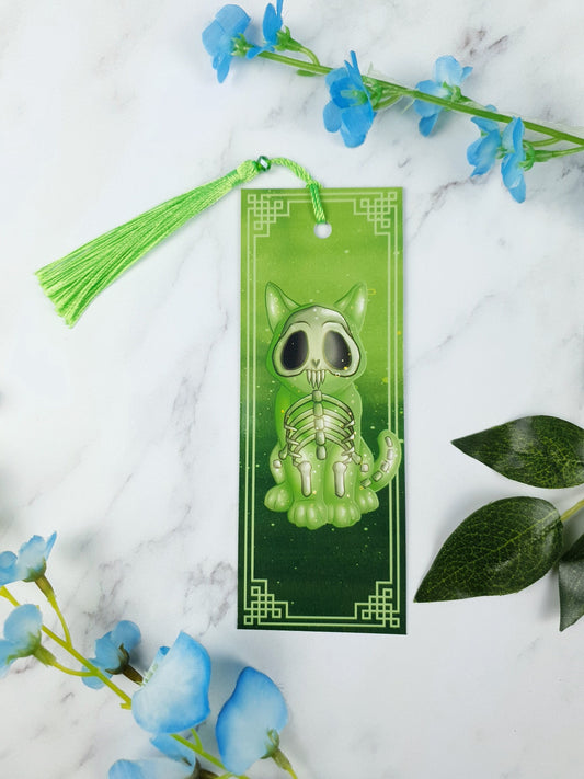 Skeletal Jelly Cat Bookmark | Spooky Green Slime Cat | Glossy or Holographic | Fantasy Game-Inspired Book Gift | Cute & Creepy Companion
