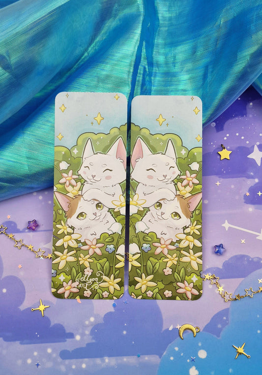 Spring Cats Bookmark | Luni & Saphira | Cute Floral Garden | Cozy Reading Gift | White Kittens | Summer Aesthetic | Book Lover Accessory