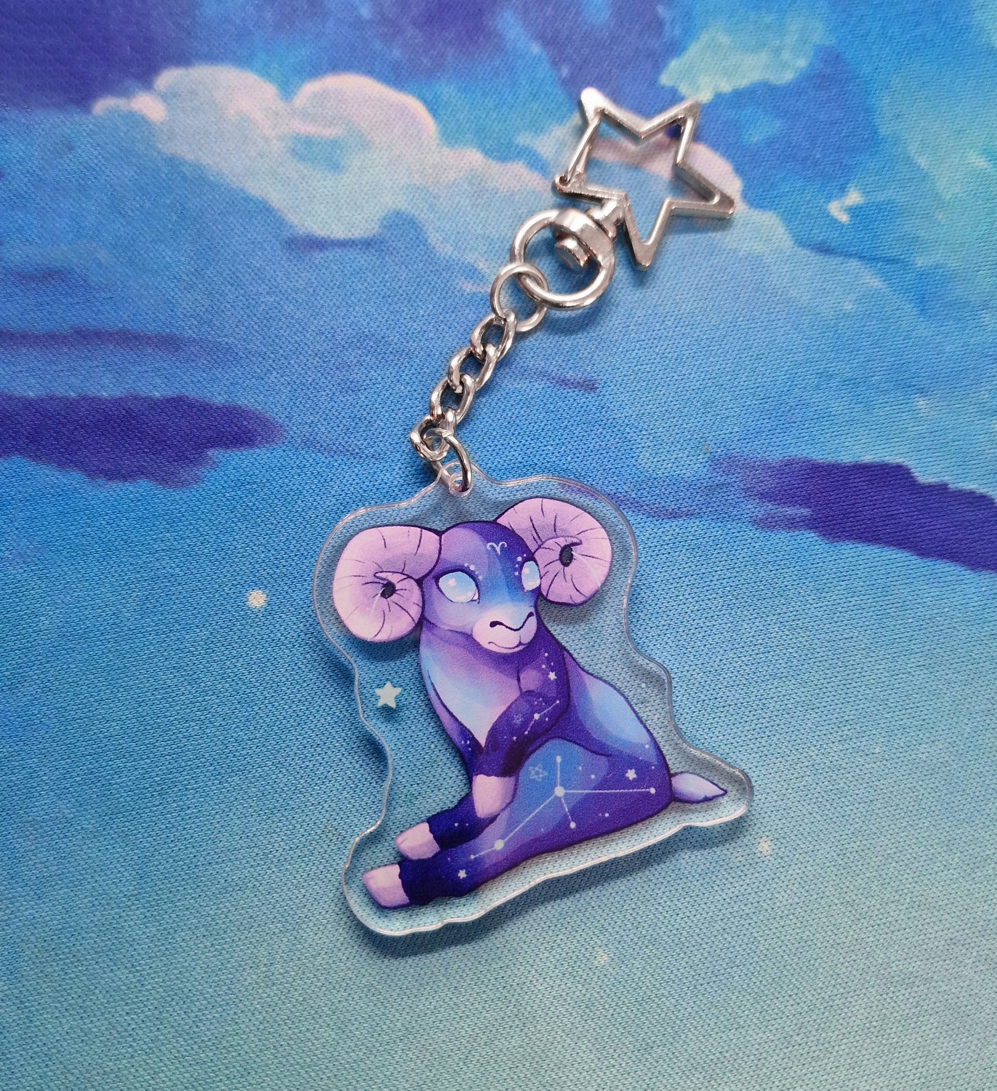 Aries | Cute | Kawaii | Glossy | Star | Celestial | Universe | Galaxy | Zodiac | Acrylic | Keychain | Gift | Accessories