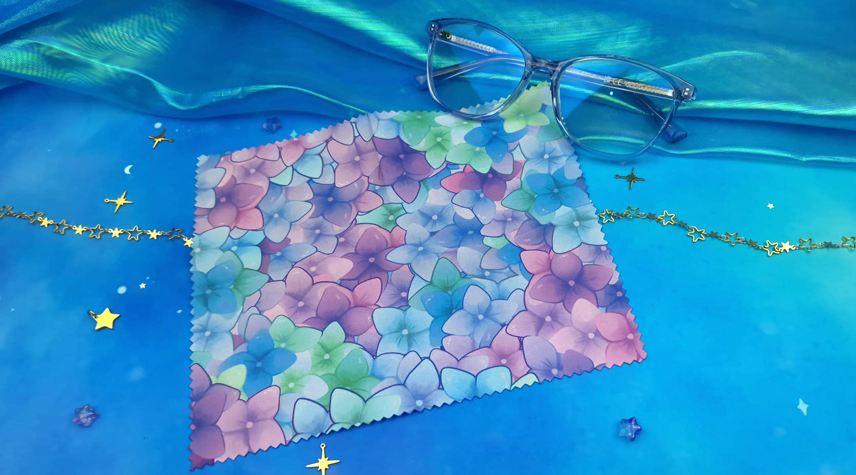 Hydrangea Dreamer Collection Cleaning Cloth – Perfect for effortlessly wiping away fingerprints, smudges, and dirt from glasses, camera lenses, phone, and tablet screens.