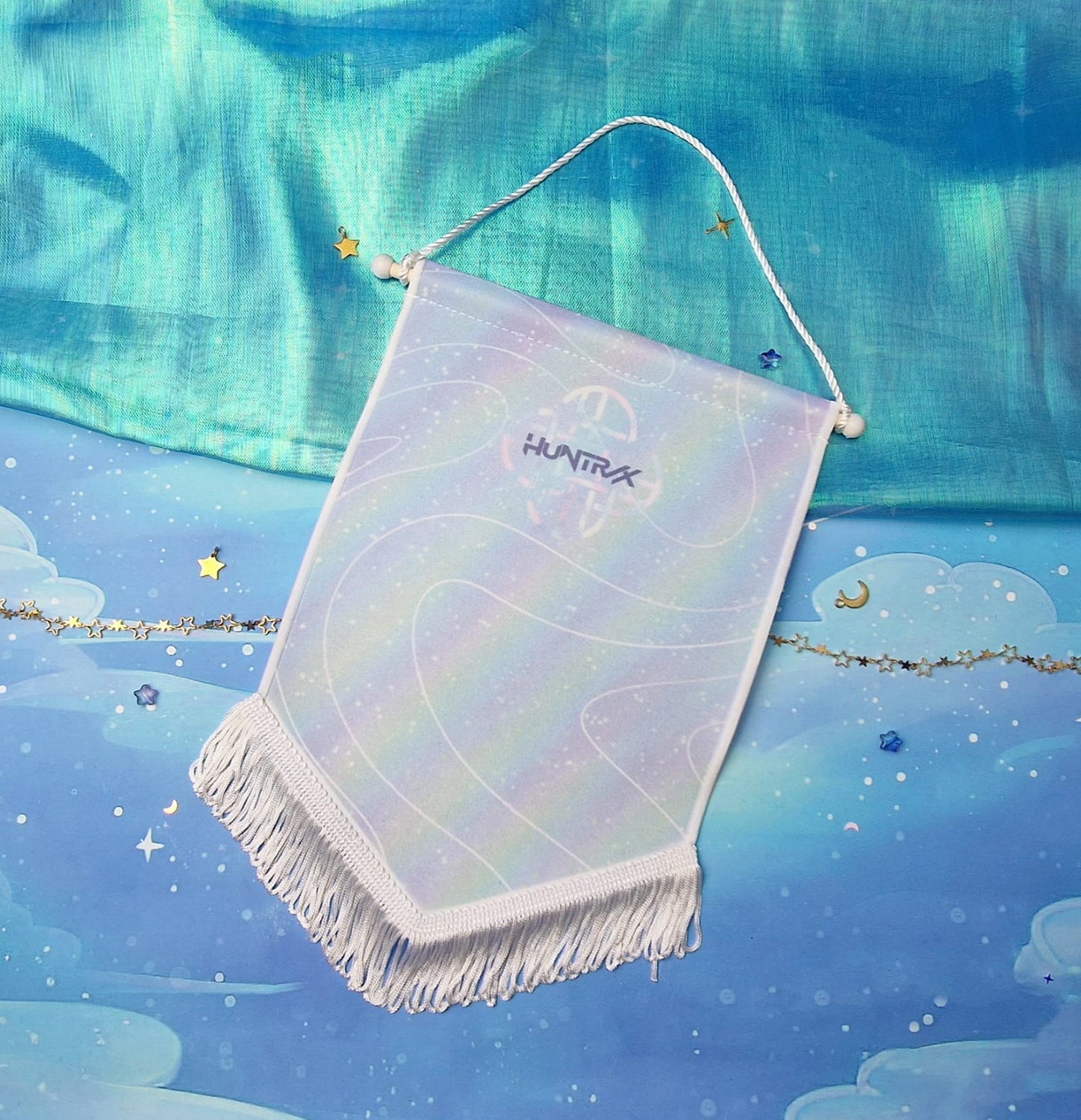 Showcase your enamel and lapel pins in style with our Huntr/X Pin Banner, inspired by the K-Pop Demon Hunters. This banner features a dreamy pastel galaxy print with ethereal swirls and subtle shimmer.