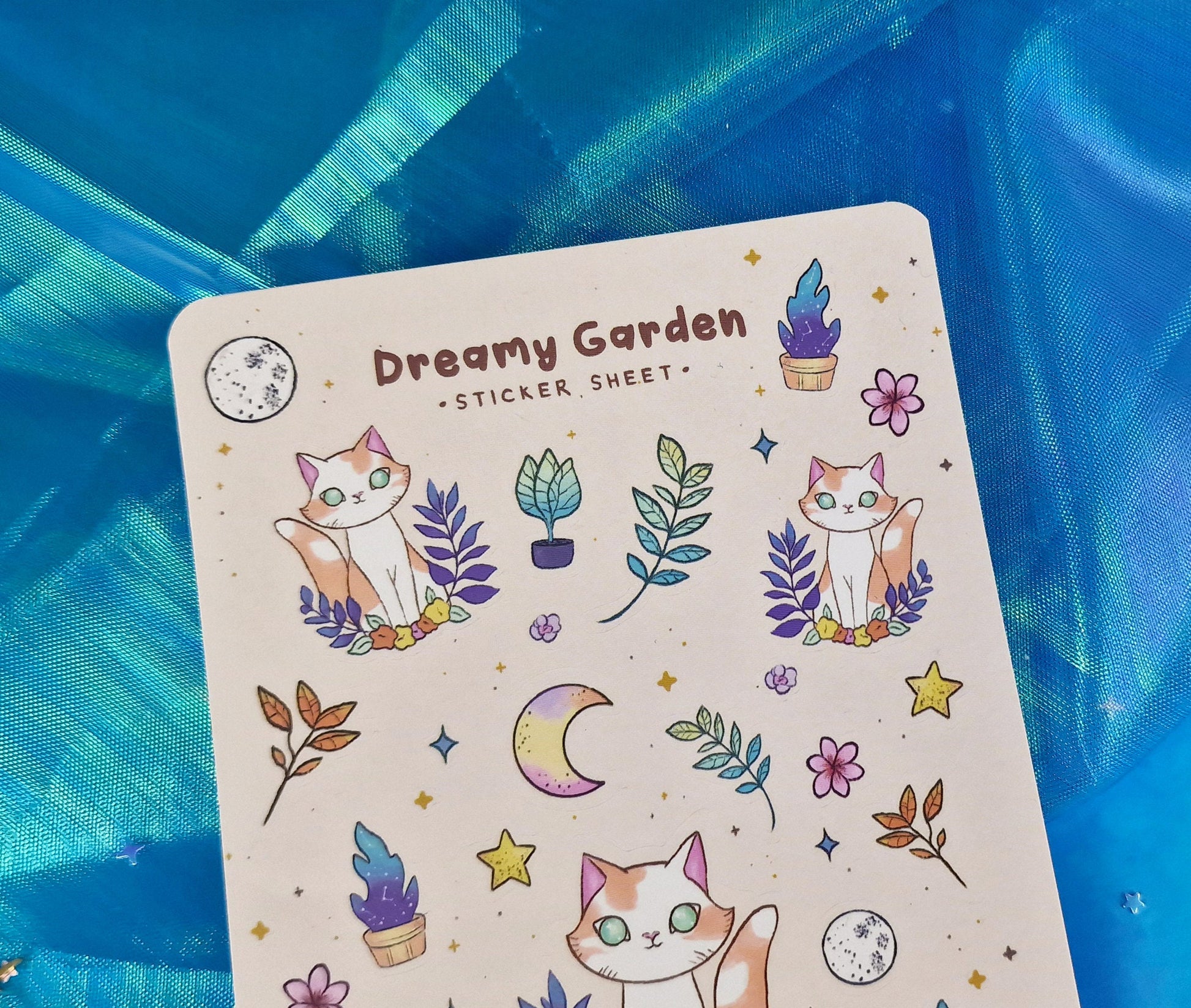 • 1x Dreamy Garden Sticker Sheet (over 40 little stickers, including stars, moons, cats, plants, flowers)