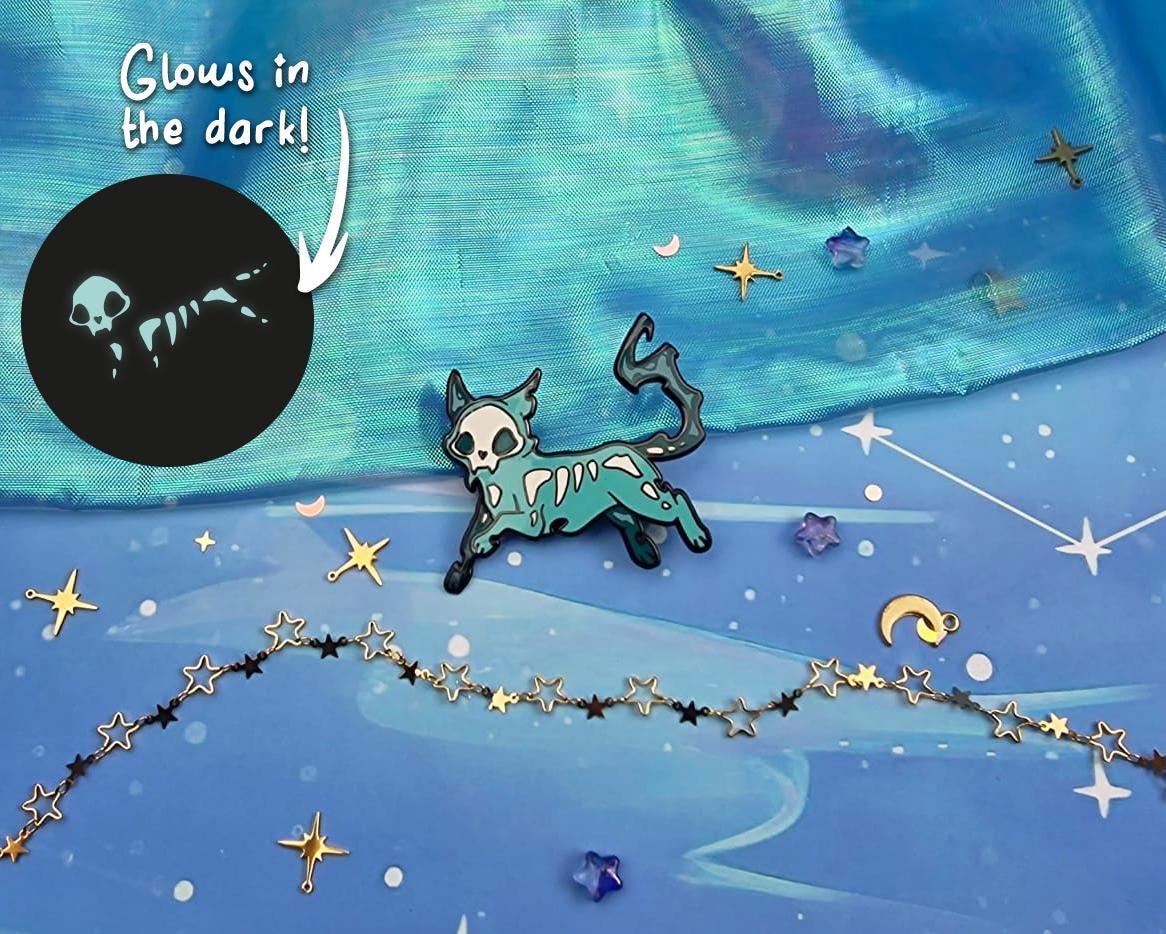 ▸Phantasmal, spirits of the Dead Enamel Pin Skeletal Cat is a must-have for all spooky season or cat lovers!