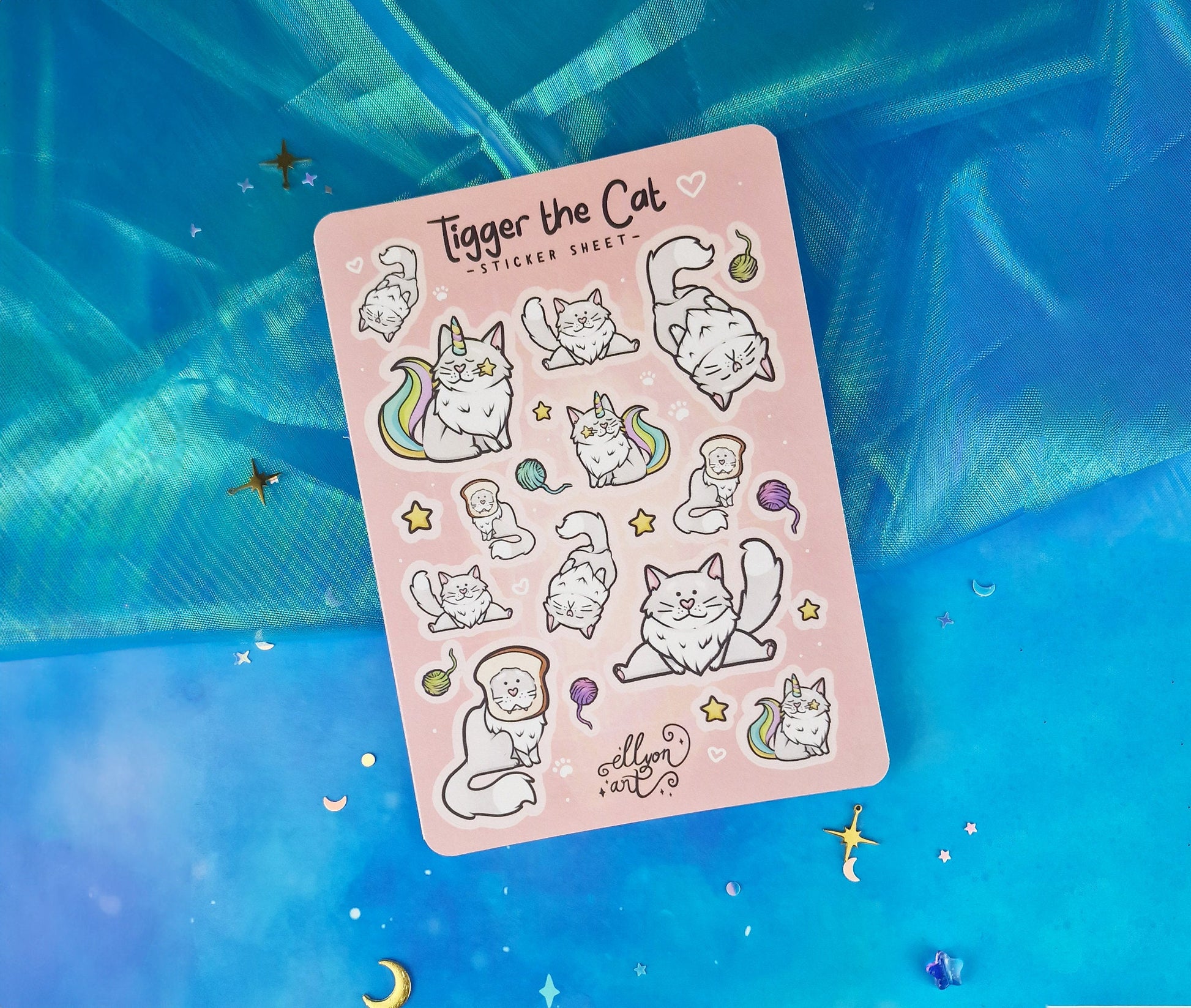 • 1x Tigger the Cat Sticker Sheet (22 stickers, including stars, yarn balls, cats)