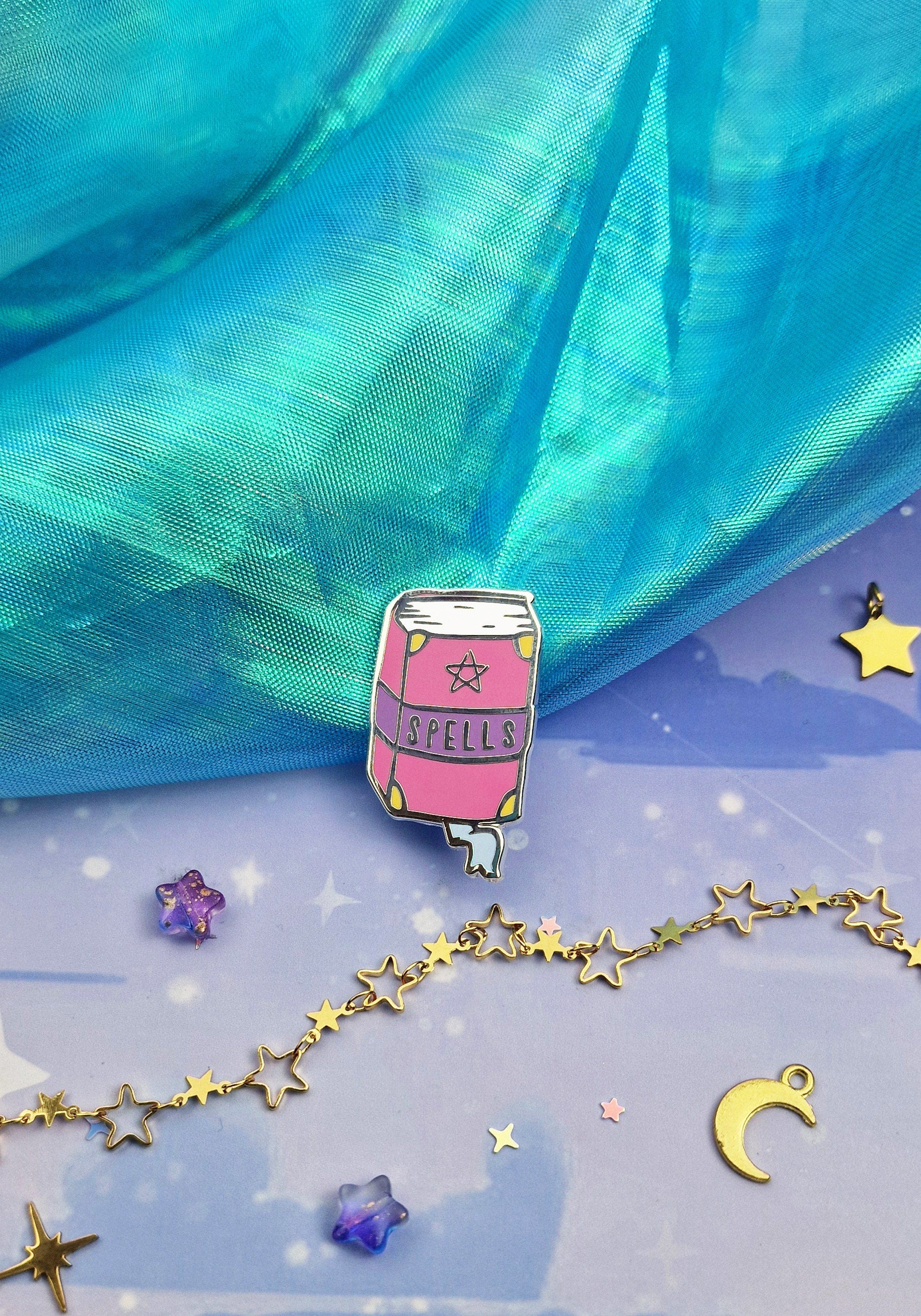 • 1x Complete Pin Collection set of Enamel Pins, includes: Witch Hat, Witch Cat, 2x Mini Star Pins, Spellbook)